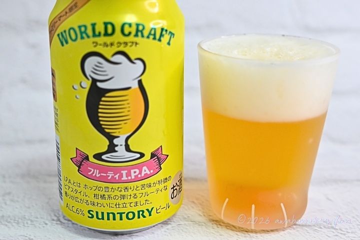 参考:サントリー ワールドクラフト フルーティI.P.A 350ml |商品情報|ファミリーマート、大好評!ファミリーマート限定クラフトビール第6弾!柑橘系の弾けるフルーティな香りが広がる「ワールドクラフト フルーティI.P.A.」1月13日(火)より数量限定発売 | 株式会社ファミリーマートのプレスリリース