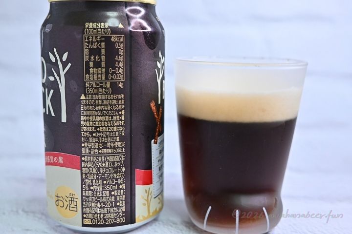 - 原材料:麦芽(外国製造又は国内製造(5%未満))、ホップ、糖類(乳糖)、準チョコレート(小麦・乳成分・アーモンド含む)/香料、乳化剤